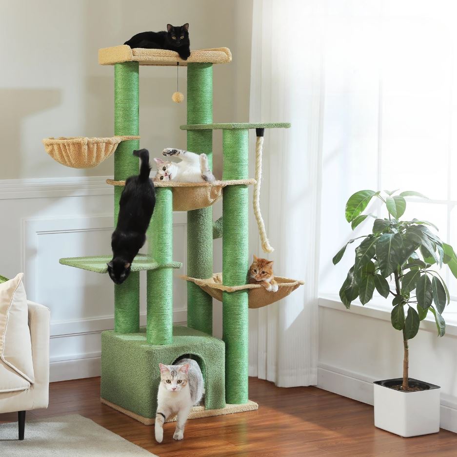L’Arbre à Chat XXL est un véritable château pour vos félins, conçu pour accueillir plusieurs grands chats en toute sécurité.